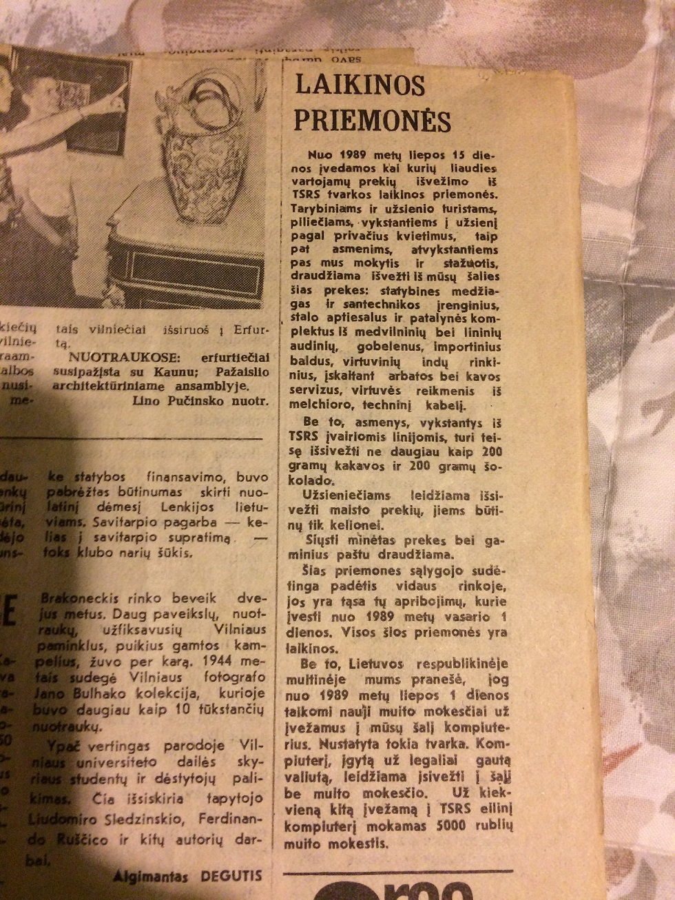 Radau. 2020-05-28 18:47, Sniegas rašė: > Muitas už kompiuterį buvo 5000 rublių. Vieną už legaliai įsigytą valiutą > leido įvežti be muito, o už kitą jau imdavo muitą. Turėjau nuskenuotą > laikraščio nuotrauką, bet nerandu dabar. Čia gal buvo 1989 metais, > straipsnis vadinosi - laikinas įstatymas dėl prekių išvežimo-įvežimo į > LTSR. > > 2020-05-28 17:48, Teisybes Dele rašė: >> On 5/28/2020 5:00 PM, useris wrote: >>> IBM žvėriškai turėjo atsieiti tais laikais >> >> >> 286 (nezinau ar tai buvo IBM) kainavo daugiau kaip zhigulys naujas >> (imant baksus rinkos kainomis) >> prisiminimai is ~ 1989