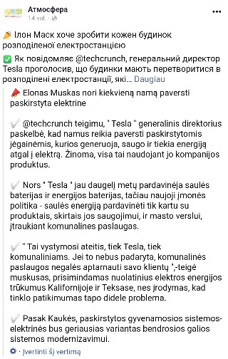 O muskas nori padaryt grida is savo power wallu. Aisku, i ji galima ir teslas sujungt, ir kitus e.mobus. -- xc <xc0_istrinti@inbox.lt> Wrote in message:r > Elektros entuziastai svajoja apie 'smart grid'ą, t.y. kuris reguliuoja kada krauti tuos auto, o kada iš jų imti energiją. T.y. kai tinkle perteklius - eina į auto, kai trūksta, tie patys auto pašeria tinklą energiją. Berods Kalifornijoje jau yra pilotinių projektų (o gal jau ir natūroje veikia).Kiek šita svajonė gyvybinga - nžn. ----Android NewsGroup Reader---- https://piaohong.s3-us-west-2.amazonaws.com/usenet/index.html
