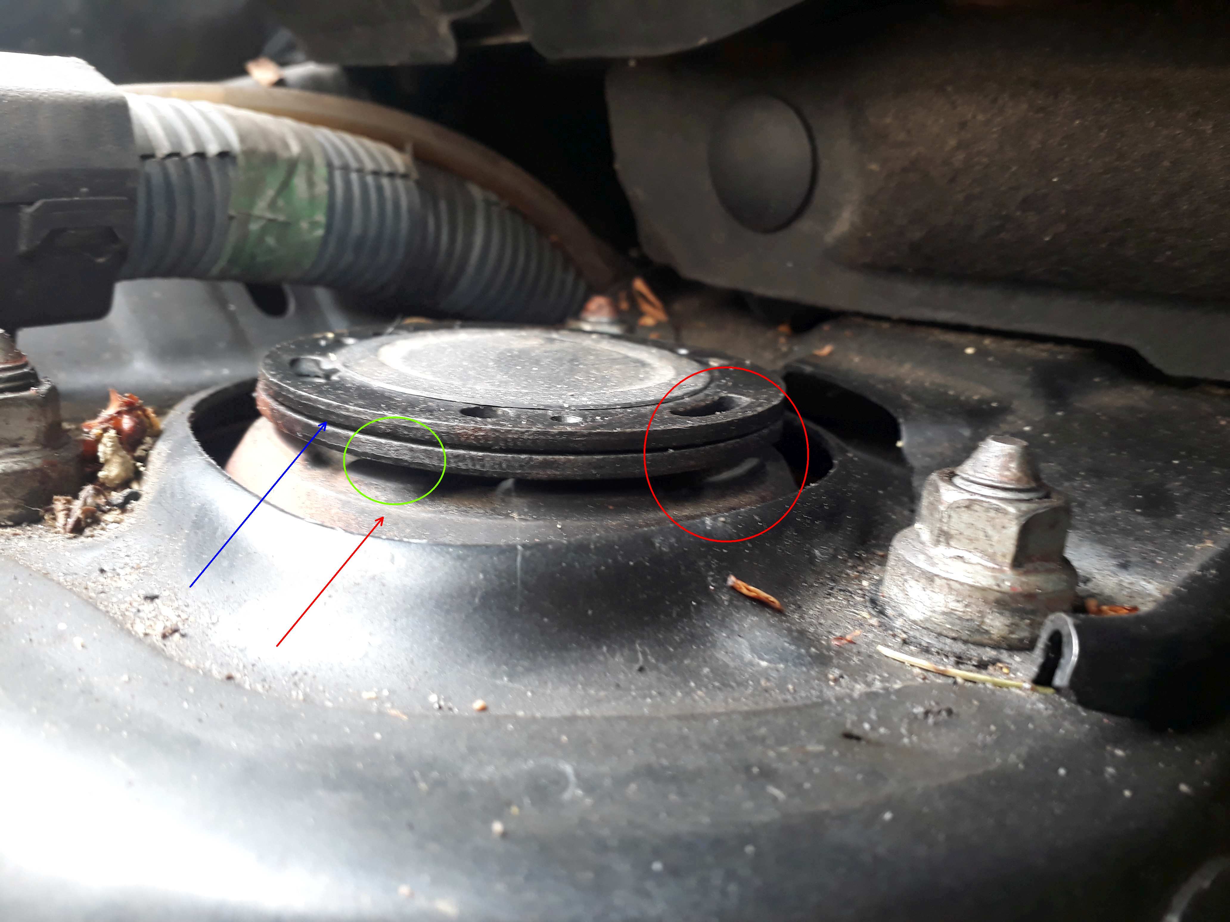 Sveiki, esu toks prie botanikų ir nesuprantu ar viskas ok ar ne ok su amortizatoriais, kurie neseniai buvo pakeisti. Toyota raw4. Nuvažiavom ~300km. Prisegu foto kaip amortizatoriai atrodo "po kapotu". Kas man kelia botaniškų įtarimų: - raudonai apibrauktoj vietoj sutampa skylės metale ir gumoj, tuo tarpu žaliai apibrauktoj - ne. - ar tikrai turi būti tarpas tarp metalo ir gumos? Kai klibinu mašiną ranka tas tarpas kinta. Taip yra tiek kairėj tiek dešinėj. Vaidas