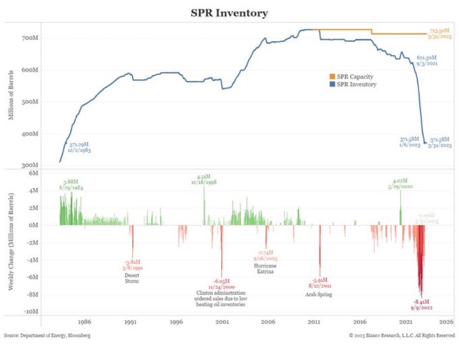 Vienas paveiksliukas, kiek sumažėjusios USA naftos atsargo, dėl bandymo palaikyti žemas kuro kainas (naftą iš atsargų pastaruosius metus pardavinėjo ir kitos šalys), antras paveiksliukas - arabų šalių savanoriško naftos gavybos mažinimo kiekiai.