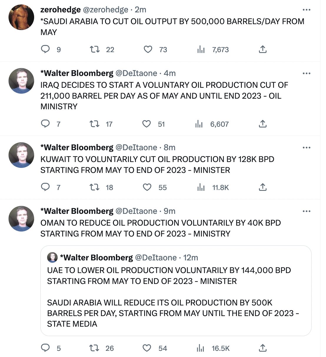 Sunku pasakyti ar po susitikimo su kinais, ar šiaip nusprendė iš vakarų uždirbti daugiau, ar tiesiog prognozuoja smarkų paklausos kritimą (abejotina), bet OPEC+ gerokai mažins gamybą nuo gegužės pradžios.