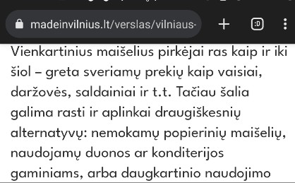pvz, maxė. Lietuvoje https://madeinvilnius.lt/verslas/vilniaus-rinka/maxima-taip-pat-informuoja-kiek-kainuos-vienkartiniai-plastiko-maiseliai-nuo-liepos-1-d/ -- Lawrence Jamieson <lj@world.com> Wrote in message:r > Lietuvoje? :) Geras bajeris. Lietuvoje net McDonaldas kečupo prie bulvyčiu neduoda. ----Android NewsGroup Reader---- https://piaohong.s3-us-west-2.amazonaws.com/usenet/index.html