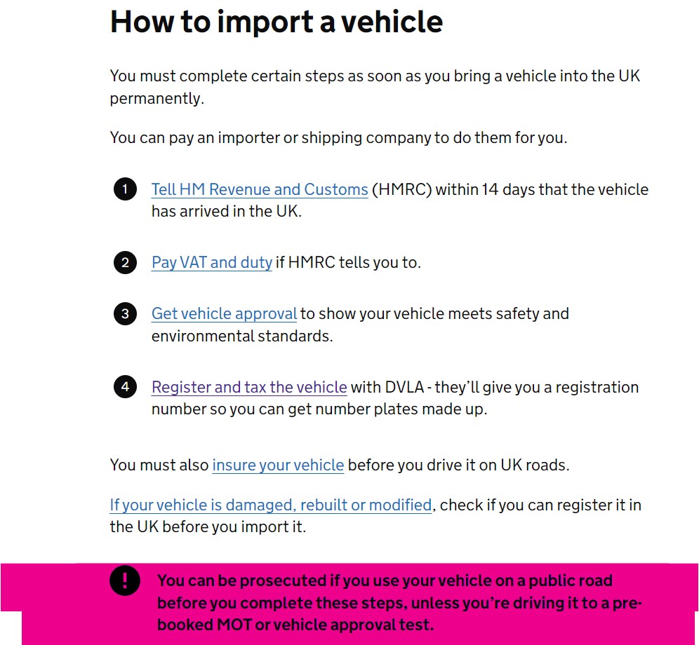 Prašom 2024-04-08 23:05, Bronco rašė: > Pabaigai: > Pateik man UK oficialų dokumentą, jog nėra suteikta jokio termino > automobilio registracijai tapus UK rezidentu, o ne kažkokius paistalus. > Nepateiksi tokio dokumento - esi savimyla kvailys, kuris apsišiks, bet > nepasiduos, nors ir neteisus.