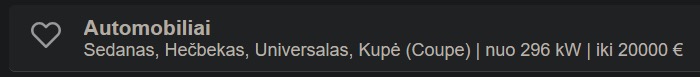 sauni taip ir ner vw "CodeC" <temp@tmp.tp> wrote in message news:vcpggl$2t79f$1@news.rkm.lt... > gal kas mokat addr line pakoreguot taip, kad nerodytu pageidaujamos markes > auto sarase? > > tarkim: > > https://autoplius.lt/skelbimai/naudoti-automobiliai?make_id_list=&engine_capacity_from=&engine_capacity_to=&power_from=&power_to=&kilometrage_from=&kilometrage_to=&has_damaged_id=&condition_type_id=&make_date_from=&make_date_to=&sell_price_from=&sell_price_to=&fuel_id%5B30%5D=30&wheel_drive_id%5B17363%5D=17363&co2_from=&co2_to=&euro_id=&fk_place_countries_id=&qt=&number_of_doors_id=&gearbox_id=&steering_wheel_id=&is_partner=&older_not=&order_by=2&order_direction=ASC > > o taip atrodo tas pats, kai pasirenkti TIK VW (visus): > > https://autoplius.lt/skelbimai/naudoti-automobiliai?make_id_list=43&engine_capacity_from=&engine_capacity_to=&power_from=&power_to=&kilometrage_from=&kilometrage_to=&has_damaged_id=&condition_type_id=&make_date_from=&make_date_to=&sell_price_from=&sell_price_to=&fuel_id%5B30%5D=30&wheel_drive_id%5B17363%5D=17363&co2_from=&co2_to=&euro_id=&fk_place_countries_id=&qt=&number_of_doors_id=&gearbox_id=&steering_wheel_id=&is_partner=&older_not=&save_search=1&slist=2377824377&category_id=2&order_by=&order_direction=&make_id%5B43%5D=0 > > kaip padaryt, kad pirmoj paieskoj nerodytu nei vieno VW? >