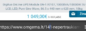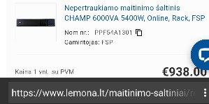 Dar pora https://www.omgema.lt/nepertraukiamo-maitinimo-saltiniai-ups/197165-digitus-online-ups-module-dn-170107-10000va-10000w-2u-lcd-led-pure-sine-wave-865-x-440-mm-x-620-mm-18kg-4016032473558.html -- Android <vnature@vnature.vnature> Wrote in message:r > Pasidomejau, pirmas guglo "Ad" linkas i varle.Visada galima ieskot pigesniu kituose linkuose. Pasidairius naudoto - kaina nukristu maziausiai 50% ar daugiau. Net panagrinejau ta 8kw be akumu - svinas, namuose drasiai galima jungt pora didesniu masininiu po 120 Ah. So sumoj su 500w generu galima tilpt i 1000 - 1500e ir turet patikimai veikiancia avarine sistema. Pasidare idomu suzinot kiek galios realiai pasiurbia mano SS. ----Android NewsGroup Reader---- https://piaohong.s3-us-west-2.amazonaws.com/usenet/index.html
