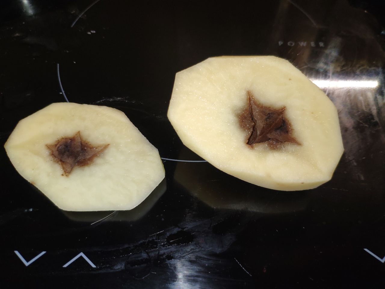 gal ne visai i tema, bet gal kas nors zinos. Sodinau pirma karta bulves. Nukasus, kai tik didesne bulve tai viduj va taip. Gal zinot ko truksta, ar ko per daug? Kazkokia liga?