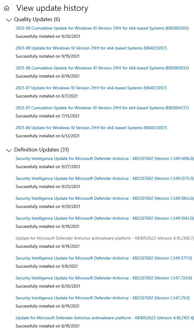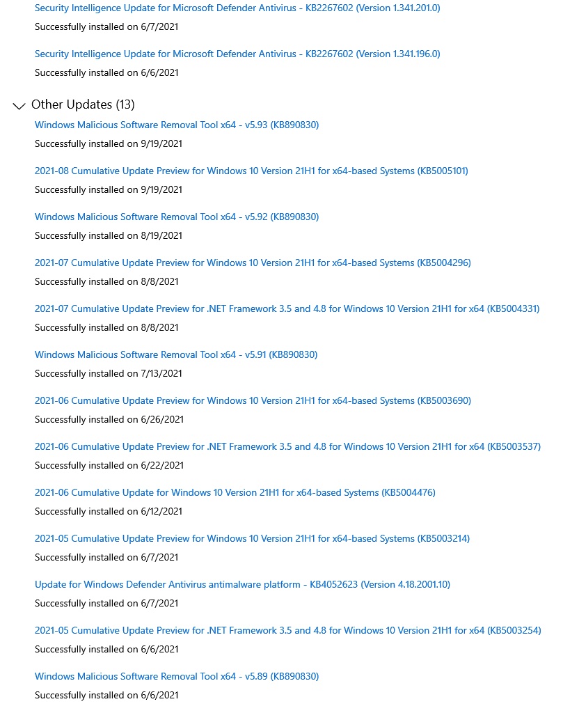 On 2021-09-27 08:36, ravikas wrote: > On 2021-09-26 11:26, news reader wrote: >> ABLomas <abl@xxx.lt> wrote: >>> On 2021-09-25 16:34, news reader wrote: >>>> Windows updeitai eina kas antra diena ir uzpisa savo kiekiu, lindimu >>>> i akis ir trukdymu, reikalavimais restartuoti, kurio niekaip negali >>>> isjungti. >>> >>> Ne nu valdykis bišky, kiti paprastesnio charakterio žmogai dar ims ir >>> patikės =) >>> >>> Nekalbant apie tai, kad atjungt update'us vis tiek galima (nors jie ir >>> neina kas antrą dieną), tai, jei jau jie erzina - visad galima LTSB >>> naudot. Tada abdeitus matysi visiškai begraunde kartą per kelis >>> mėnesius, minimalius (security-only) ir neknisančius proto. >>> >> >> pasikarsciavau - windows updeitai eina kas trecia diena, o ne kas antra. >> Dabar jau ok? :) >> > > Čia kelinti win? Nes kol kas iš pono rašliavos panašu, kad tu tuos win > matęs tik pas kaimyną pro langą. nepadingejau ir atsidariau updeitu istorija. Se, gerekites i sveikata. Kol i suda snukiu neibedi tol zmogus rekia, kad nera jokio sudo.