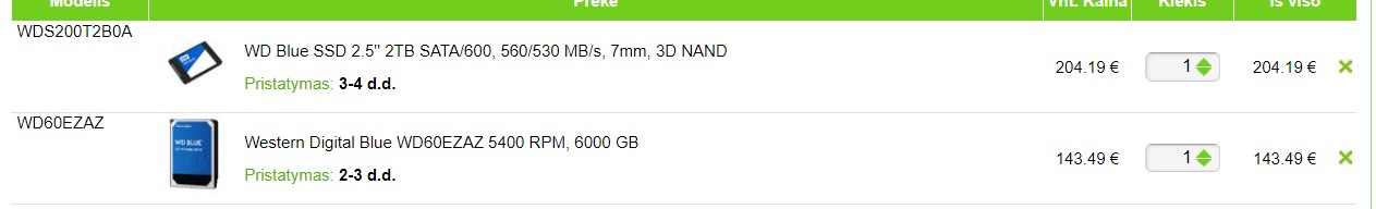 Kurį pasirinkti. Bus naudojamas nuotraukoms. 2022-05-30 22:27, Sniegas rašė: > Kas geriau už tą pačią kainą - 8 TB HDD ar 2 TB Sata SSD?
