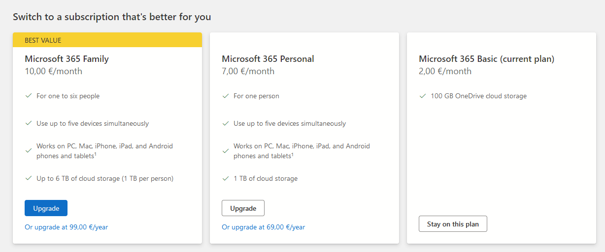 Nežinau, aš tokio nematau. On 2024-12-06 22:42, bat0nas wrote: > On 2024-12-05 22:21, Zyza wrote: >> O čia... kaip gauti 6 TB už 50€ metams? Dzin, kaip gaut 1TB už 50€ >> metams? :D >> > > > Tai gi sakau: > > Perki Microsoft 365 Family ir gauni 6TB (6x1TB). > Paskutinį kartą tiek mokėjau šį rugpjūtį. Tiksliau - 49,99€. > > Nepamenu metų, kad būčiau mokėjęs brangiau.