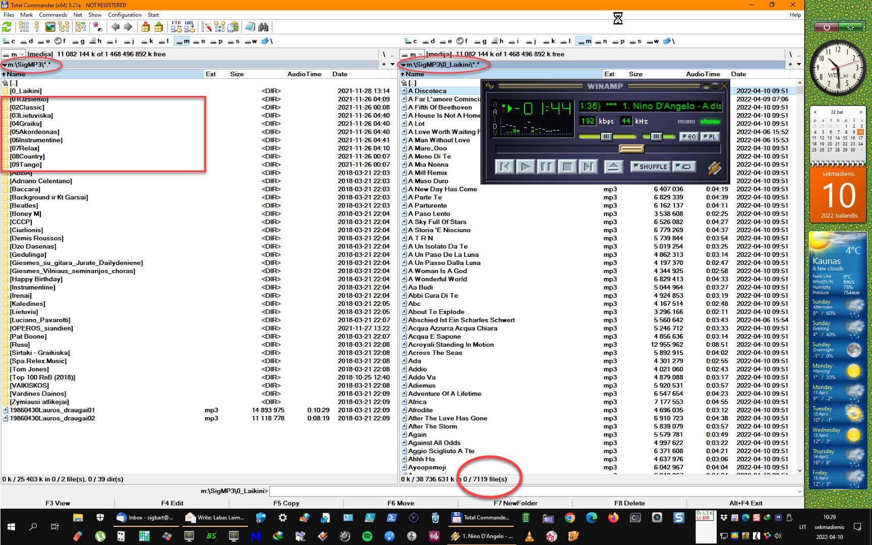 PS, o.programming kažkoks neaktyvus... Bėda ta, kad nemoku rašyti scriptų... O reikia "palengvinti" .mp3 failų perkėlimą iš vienos direktorijos į kitas 9-ias(pagal kategorijas). Turiu nusikrovęs iš Spotify daug(tūkstančiai) dainų(melodijų) ir noriu jas sugrupuoti į 9 direktorijas, o po to perrašyti į automobilio mediacentro SD kortelę. Mintis(gal noras) būtų tokia: (patogiausia būtų naudotis tik skaitmenine klaviatūros dalimi) Ant pirmos dainos paspaudžiu 2 kartus pelę ir atsidaręs Winampas( "C:\Program Files (x86)\Winamp\winamp.exe") pradeda ją groti. Jei melodija nepatinka spaudžiu "0", atsidaro message langas su klausimu "Ar tikrai "0" ?" Spaudžiu "Enter" ir daina ištrinama iš direktorijos "0_Laikini"(būtų gerai, kad šitą patvirtinimą pagal norą galima būtų ir eliminuoti) Jei daina patinka spaudžiu skaičių (nuo 1 iki 9)atitinkantį dainos kategoriją(Uzsienio, Classic, Lietuviska, Graiku, Akordeonas, Instrumentine, Relax, Country, Tango) Ta daina perkeliama į atitinkančią direktoriją( Jei tokia daina jau ten yra, paklausiama ar ją perrašyti) Automatiškai pradeda groti sekančią dainą ir laukiama sekančio skaičiaus paspaudimo Iš anksto labai, labai dėkingas Sigitas