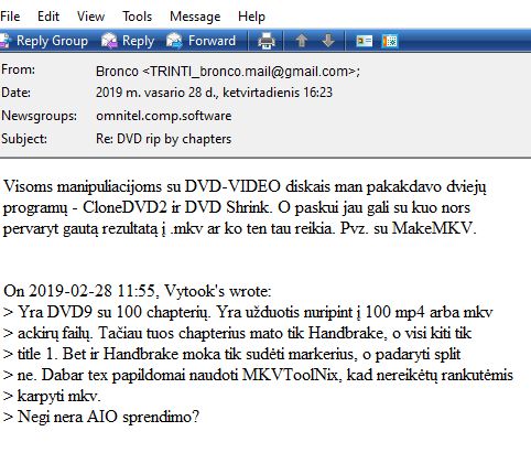 "tranzoo" <tranzoo@gmaila.kom> wrote in message news:ta1ieu$pvu$1@news.rkm.lt... > filmuok su skaitimenine kamera, kuri moka daryt mkv, telika > > On 05/07/2022 16:35, J.J. wrote: >> Kaip padaryti iš dvd disko avi ar mkv formatu vientisą filmą? >> Ankščiau lyg su darydavau AnyDVD. Su kuo dabar? >> >> Ačiū.