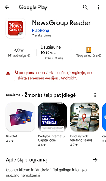 Android 12. Pats buvau nustebęs kad nerado, todėl nuorodą persisiunčiau ir bandžiau atidaryti telefone.