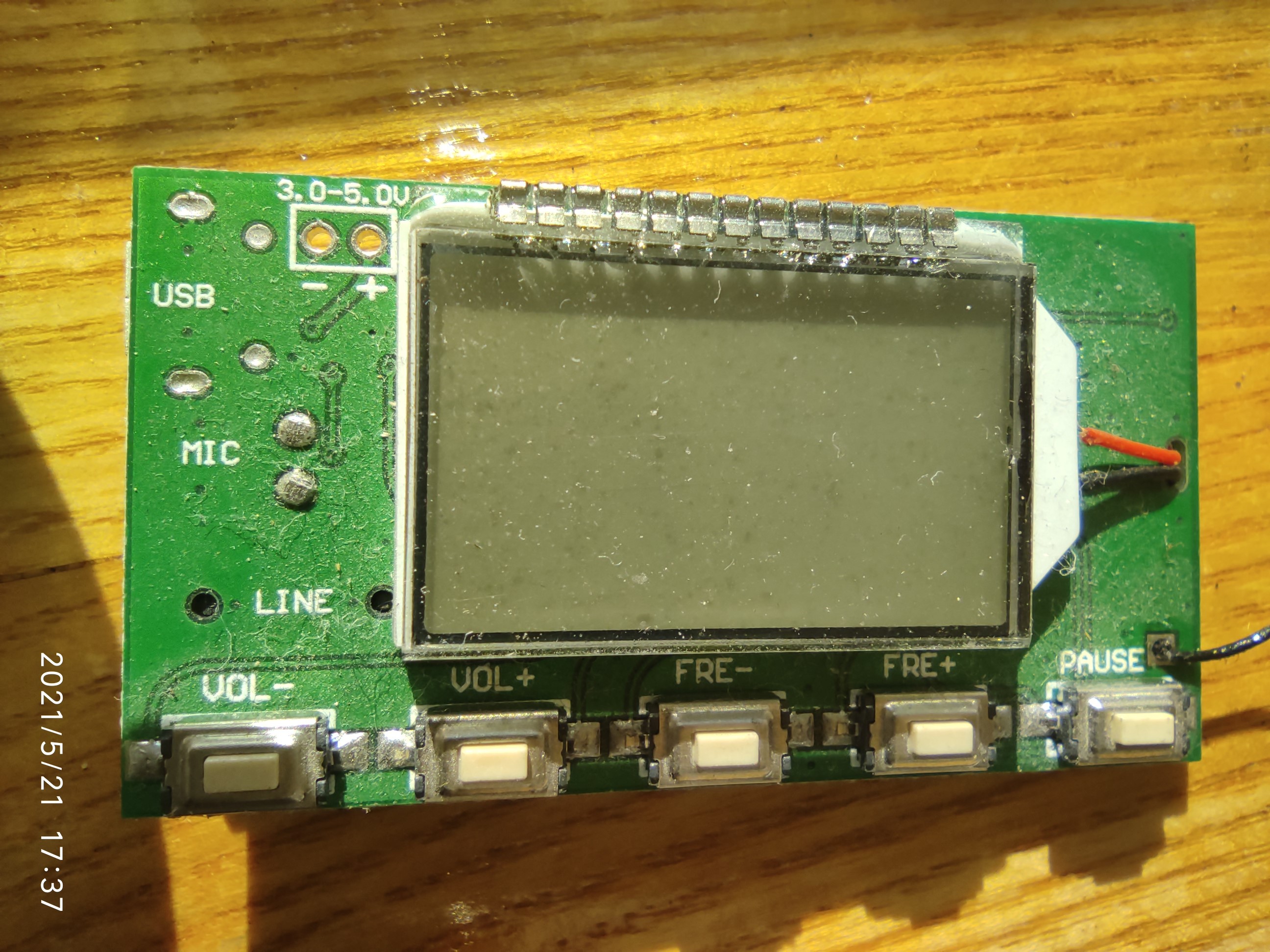 >>> Nebuvo galimybės patestuoti, nebuvo jokio garso iš kaimyno pusės. >>> Vieną vakarą grojo ta radija, vos girdimai, bet pasinaudojau proga. >>> Įjungiau savo 5V 0,3A prietaisiuką su prilituota maždaug 1 m. ilgio >>> 0,3 mm storio viela vietoj antenos. Pasigirdo traškesiai, po 10 min. >>> imtuvą išjungė.