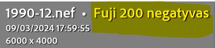 Kadaise kėliau nuotraukas per laidą tiesiai į Lightroom ir buvau padaręs spalvotiems negatyvams Presets pabandymams. Dabar prie kiekvienos nuotraukos kabina kvailą vardą ir nerandu, kur jį ištrinti ar pakeisti. Gal kas padės? Pridedu paveikslėlį. Reikia ištrinti "Fuji 200 negatyvas".