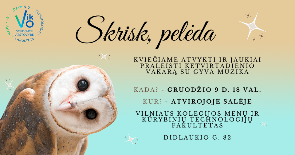 Tema: "Skrisk, pelėda"